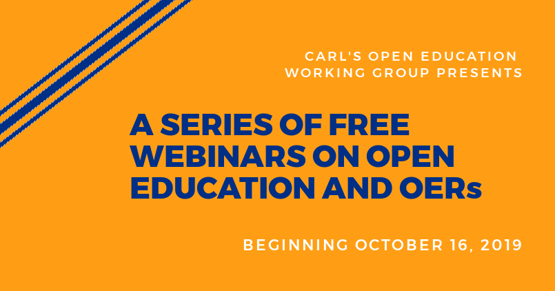 Following up on our October 16 webinar on accessibility in OERs, CARL’s Open Education Working Group is offering three additional webinars (descriptions below) which are a good opportunity to become familiar with core issues related to open education and open educational resource development.
